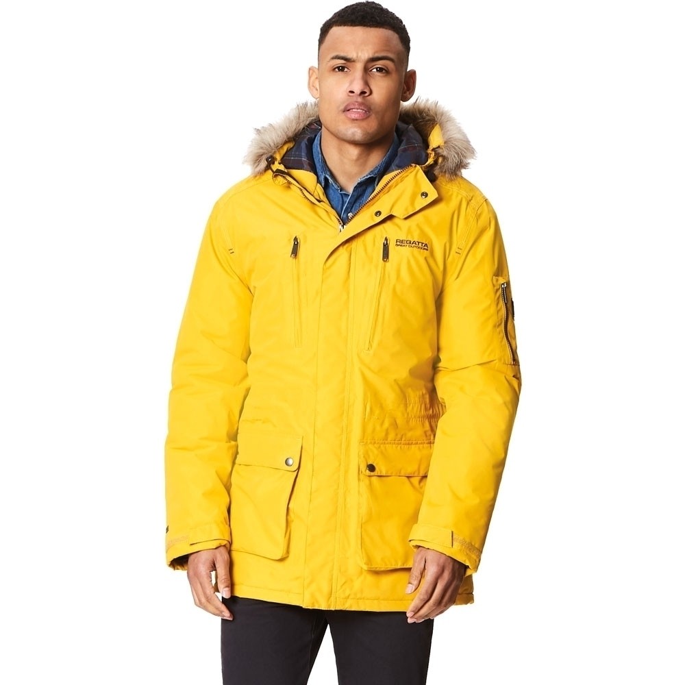 Waterproof and breathable Isotex 5000 peached polyester fabric is used while making the Regatta Men’s SALINGER Jacket. The jacket sports water-repellent finish along with Thermo-Guard insulation. Furthermore it comes with polyester taffeta lining with strategic quilt. There’s an internal zipped security pocket and a 2-way centre front zip. There are 2 handwarmer chest pockets., Waterproof and breathable Isotex 5000 peached polyester fabric., Taped seams., Durable water repellent finish., Thermo-Guard insulation., Polyester taffeta lining with strategic quilt to back panel and hood.