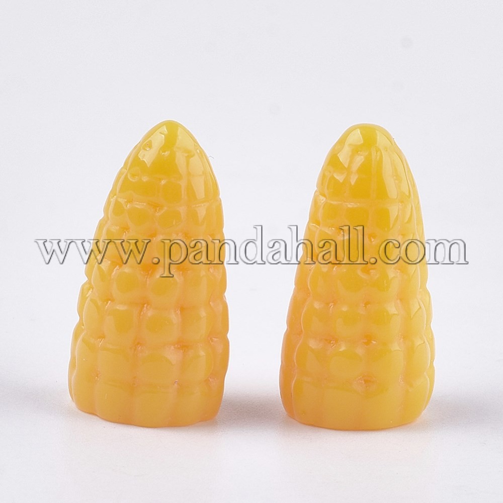 Resin Cabochons, Maize, Imitation Food, GoldSize: about 27mm long, 14mm in diameter.