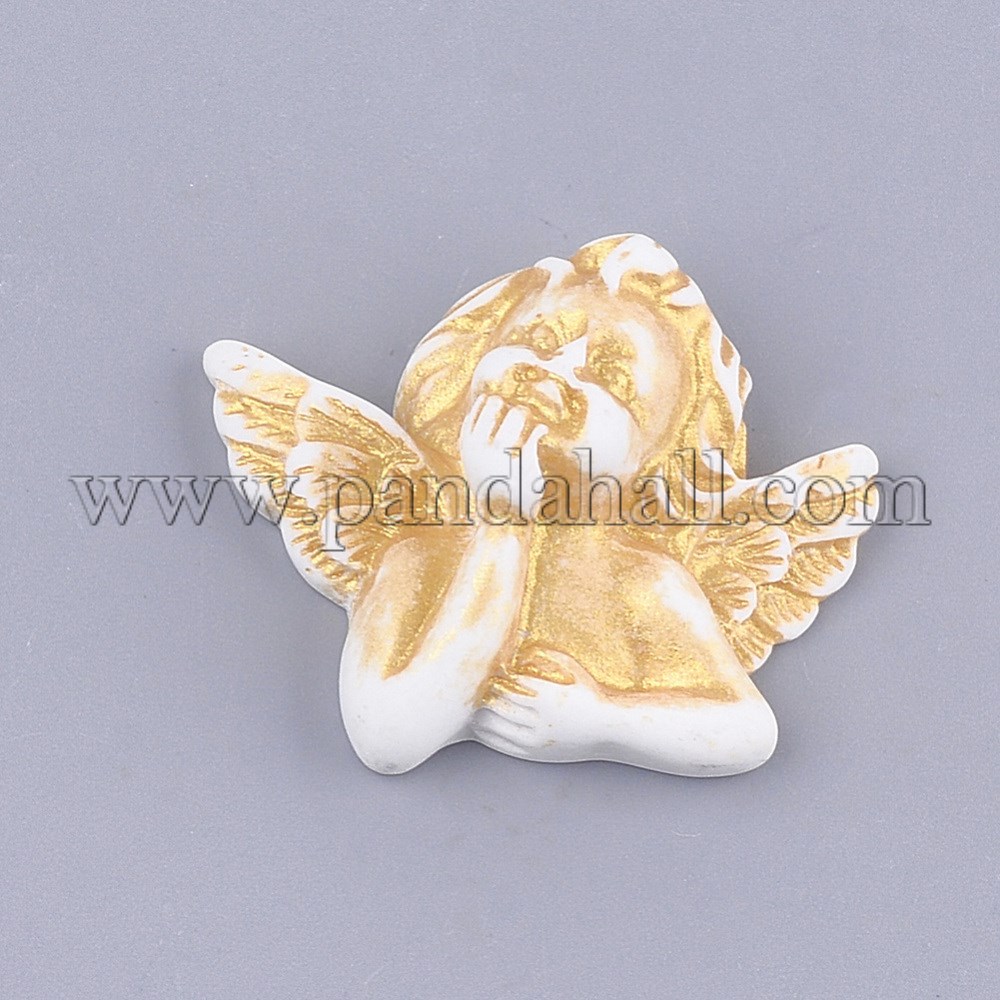 Resin Cabochons, Spray Painted, Angel, GoldenrodSize: about 25.5mm long, 32mm wide, 10.5mm thick.