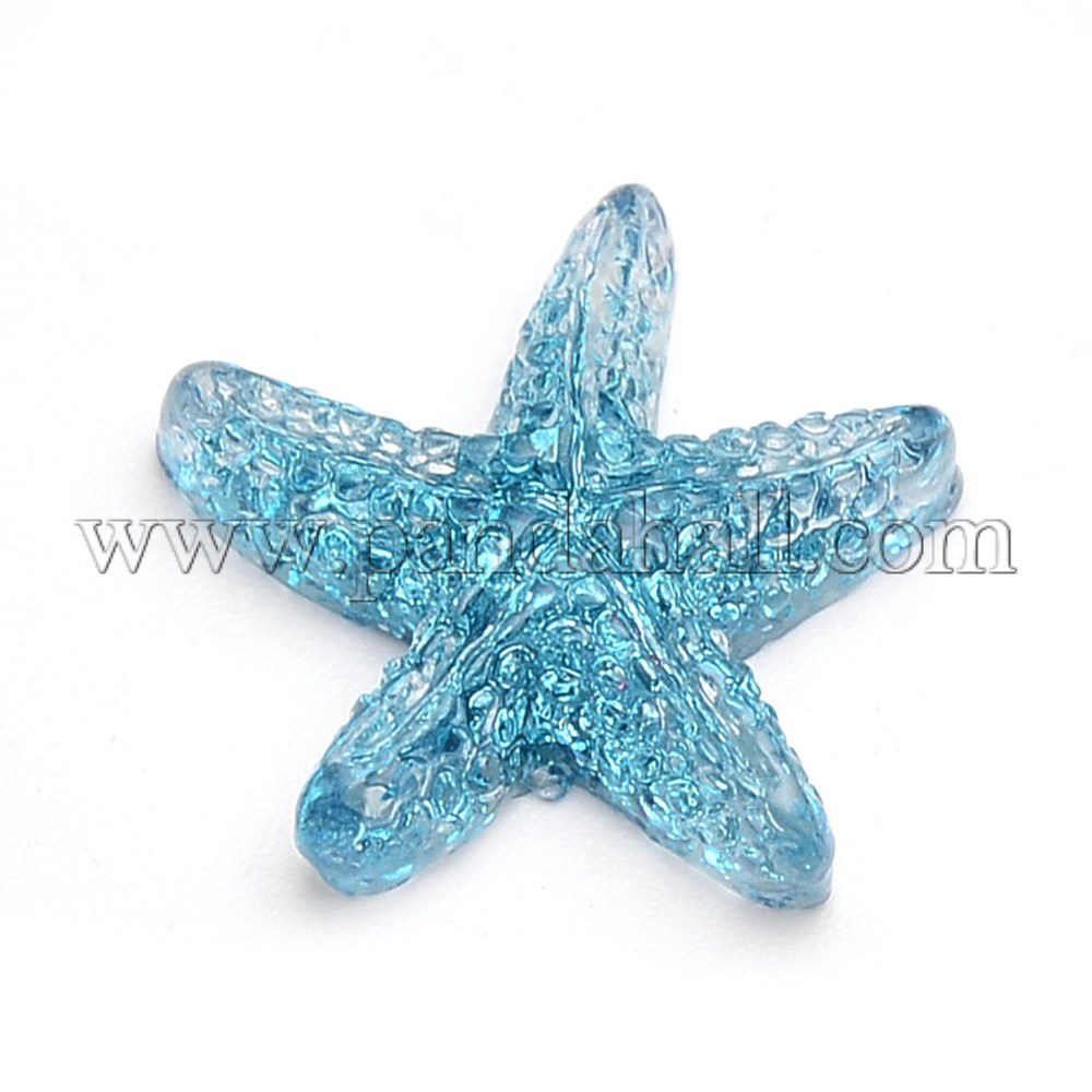 Resin Cabochons, with Glitter Powder, Starfish, DeepSkyBlueSize: about 17mm long, 17mm wide, 5mm thick.