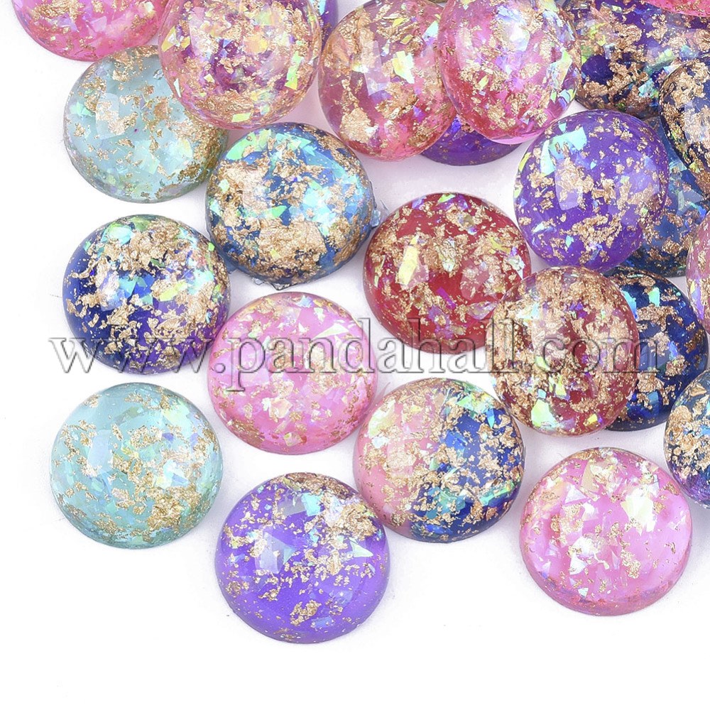 Resin Cabochons, with Gold Foil & Glitter Sequins/Paillette, Half Round/Dome, Mixed ColorSize: about 19.5mm in diameter, 9.5mm thick.