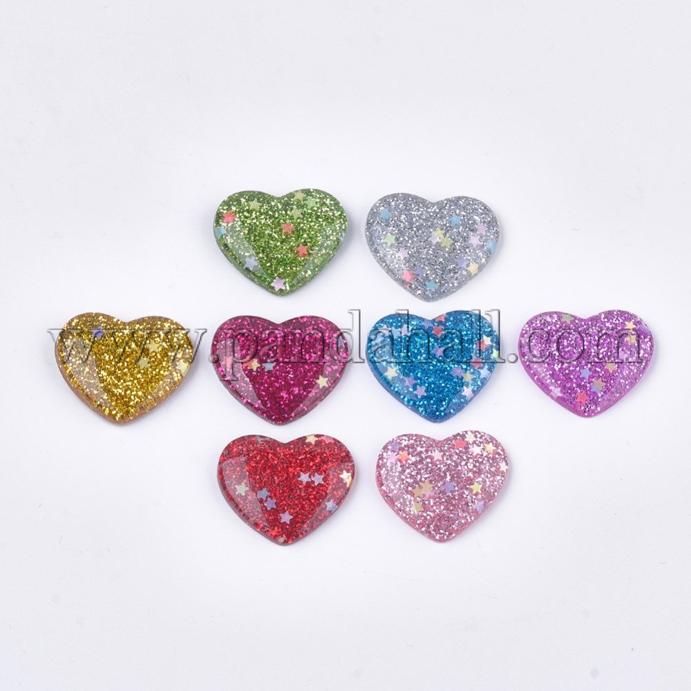Resin Cabochons, with Paillette/Sequins, Heart, Mixed ColorSize: about 24mm long, 28mm wide, 7mm thick.