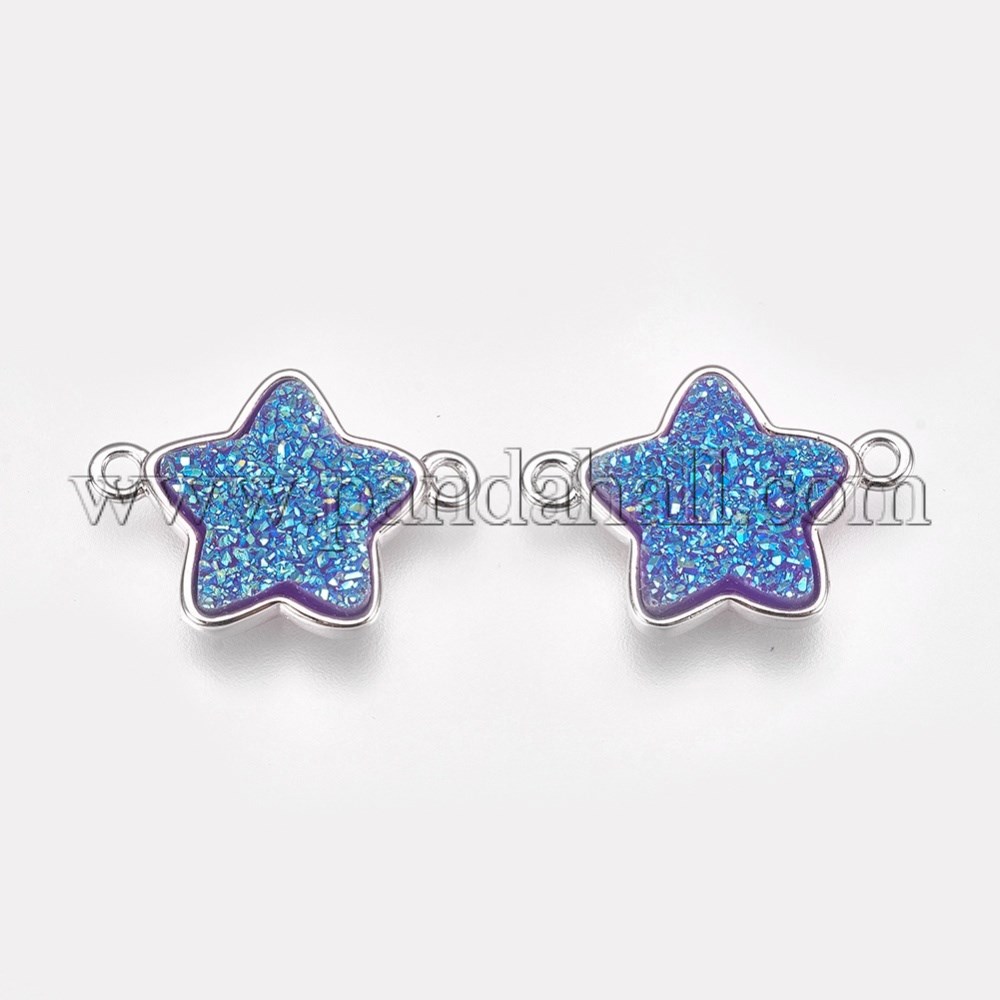 Resin Imitation Druzy Crystal Links/Connectors, with Brass Findings, Star, Platinum, DodgerBlueSize: about 21mm wide, 15mm long, 4~5mm thick, hole: 1mm.