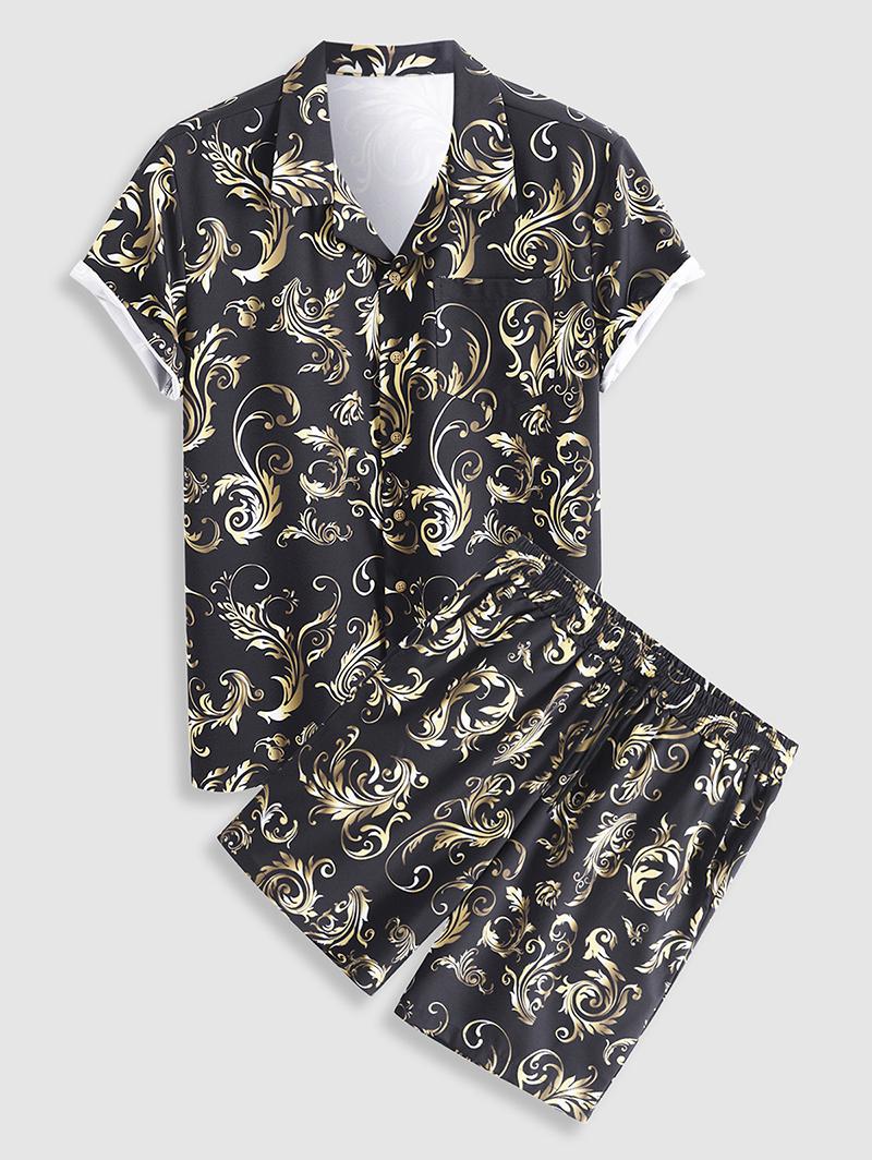 Zaful Type: Shirt&Shorts Set Style: Vintage Occasions: Daily,Vacation Shirt Length: Regular Sleeves Length: Short Bottom Length: Shorts Waist Type: Mid Closure Type: Drawstring Pattern Type: Baroque Material: Polyester,Spandex Material Stretch: No Stretch Season: Summer Weight: 0.3300kg Package: 1