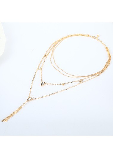 Rhinestone Decorated Gold Metal Layered Necklace FREE Shipping & 30 Days Easy Return