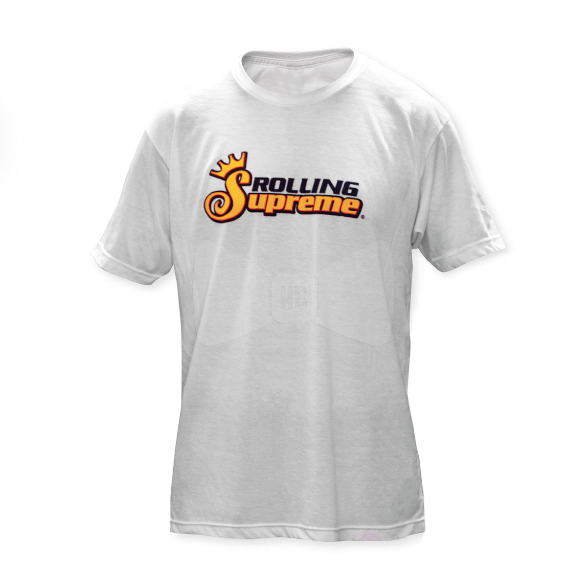 Add a bit of flair and show off your favorite rolling paper company with one of these awesome Rolling Supreme White Logo Tees! Each shirt boasts the Rolling Supreme logo on the front and a few, other, high brow rolling paper companies on the back. This breathable cotton blend shirt is sure to become a new favorite so grab one up before you miss out! This shirt looks great with the Rolling Supreme Flat Bill Hat !