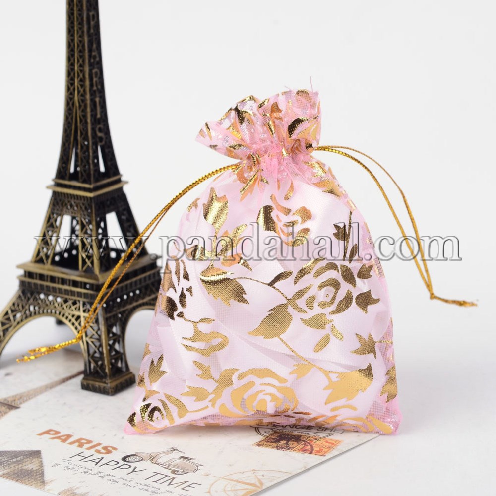 Rose Printed Organza Bags, Gift Bags, Rectangle, PearlPinkSize: about 12cm long, 10cm wide.Due to the handmade bags, the size within the error range of 0.5cm.