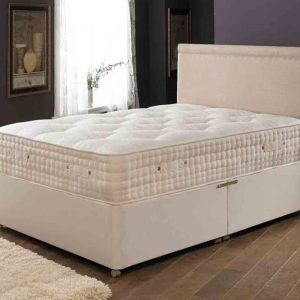 The Royal Orthopaedic Mattress is medium coil sprung mattress that has been designed to maximise support by using high specification UK manufactured Bonell springs and luxury re-bounce fibre fillings for extra longevity. Deep layers of fillings cover the spring system to provide a plush sleeping domain which ensures a restful night’s sleep. The luxurious fabric used to cover the mattress is soft to the touch and flexible. There is also flag stitched turning handles on both sides of the mattress for easy care and brass vents which will guarantee that the mattress stays fresh and healthy for many years to come, the mattress is completed with a 14-inch deep divan base available in a wide selection of fabrics & colours.