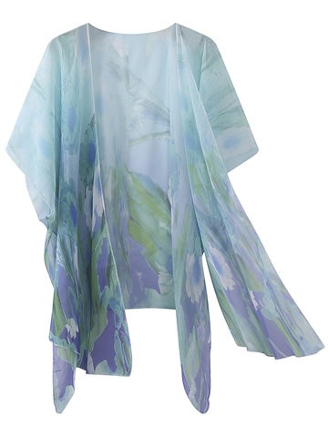 Sexy Women Flower Printed Beach Bikini Cover Ups Chiffon Kimono