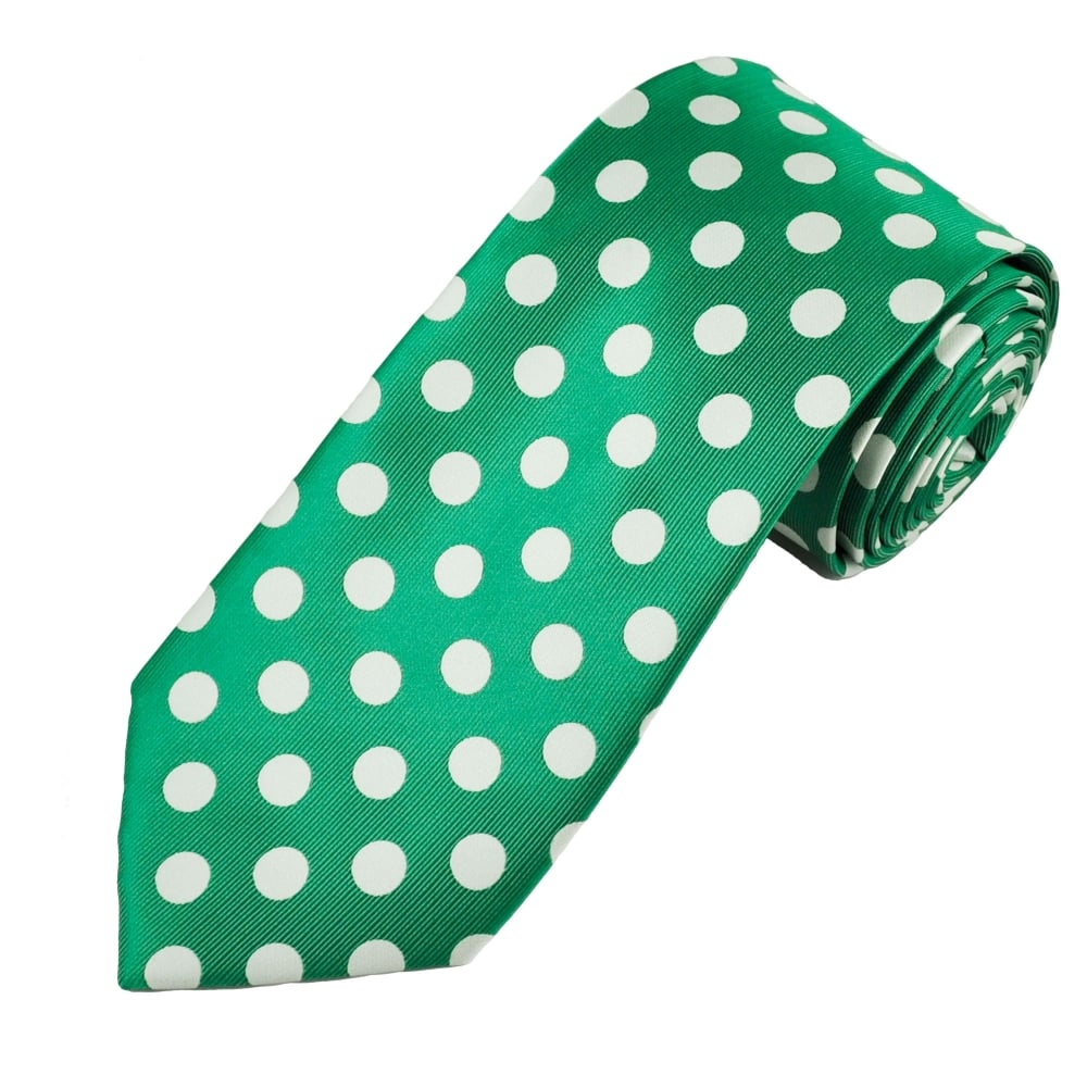 Shamrock Green & White Polka Dot Tie High Quality Tie Fabric Width at Widest Point: 8.5cm Length from Tip to Tip: 147cm