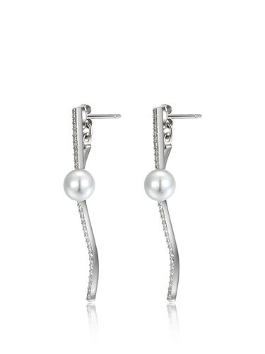 Silver Geometry Pearl 925 Sterling Silver Earrings