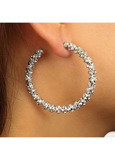 Silver Metal Circle Shape Earring Set FREE Shipping & 30 Days Easy Return