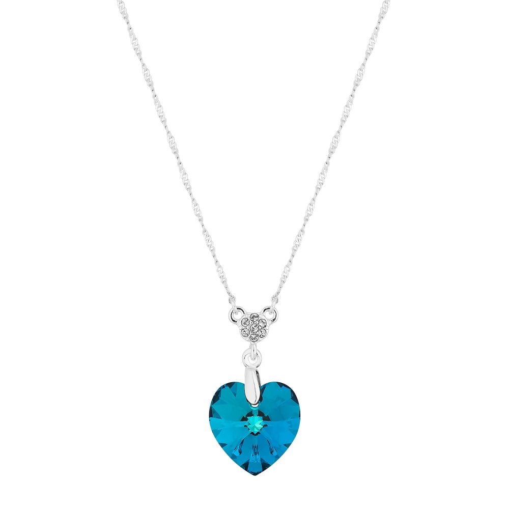 Silver Plated Blue Heart Short Pendant Necklace Embellished With Swarovski Crystals
