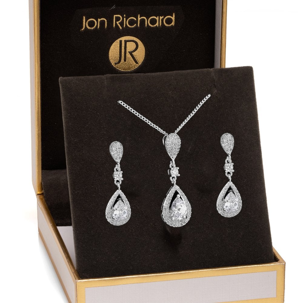 Silver Plated Clear Crystal Pave 3 Tier Pear Drop Matching Set