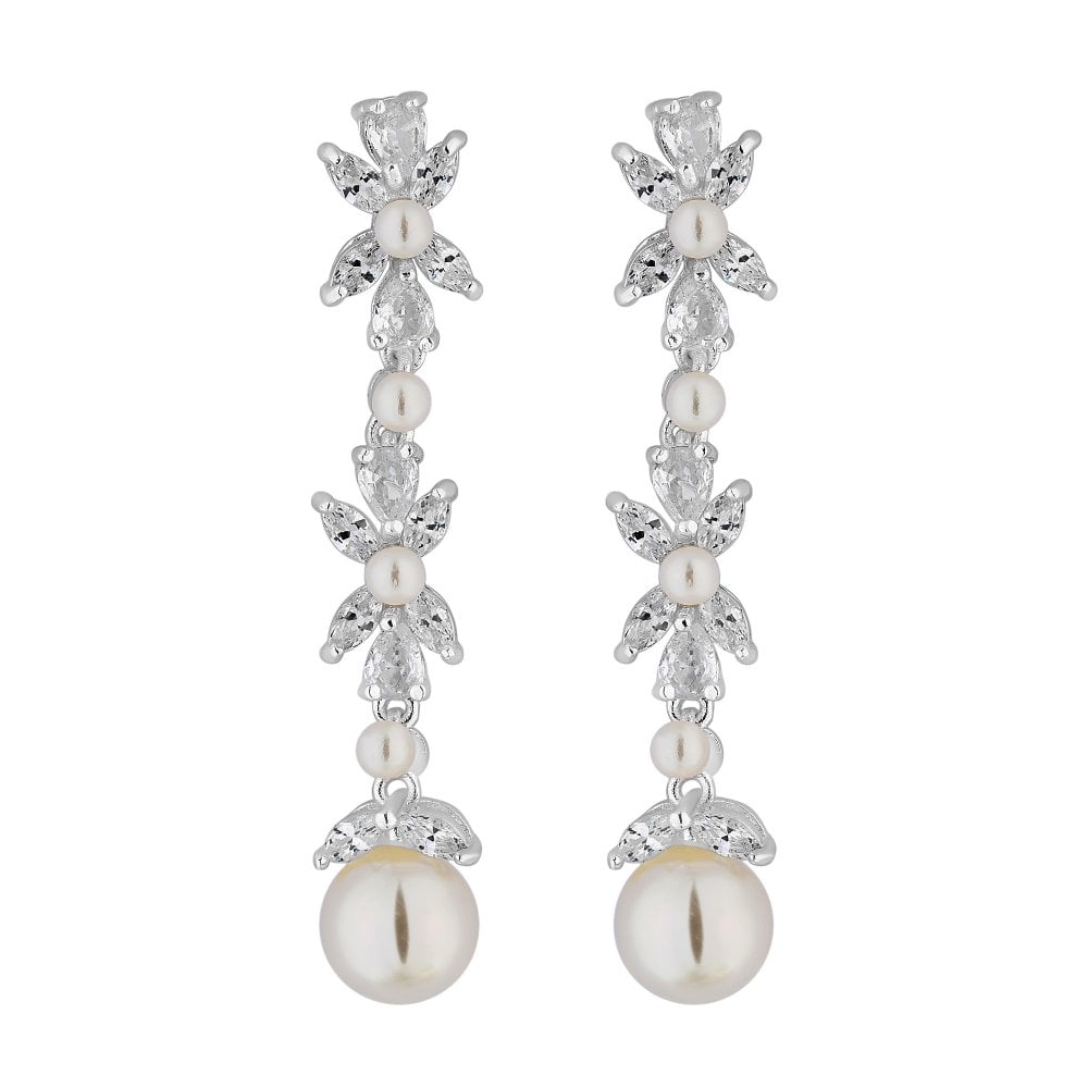 Be the first to review “Silver Plated Floral Pearl Drop Earrings”
