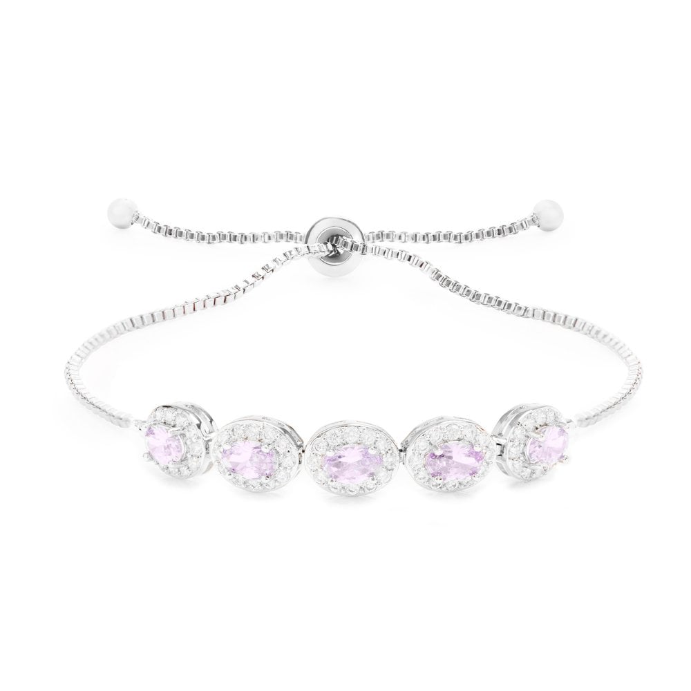 Silver Plated Light Purple Halo Tennis Toggle Bracelet