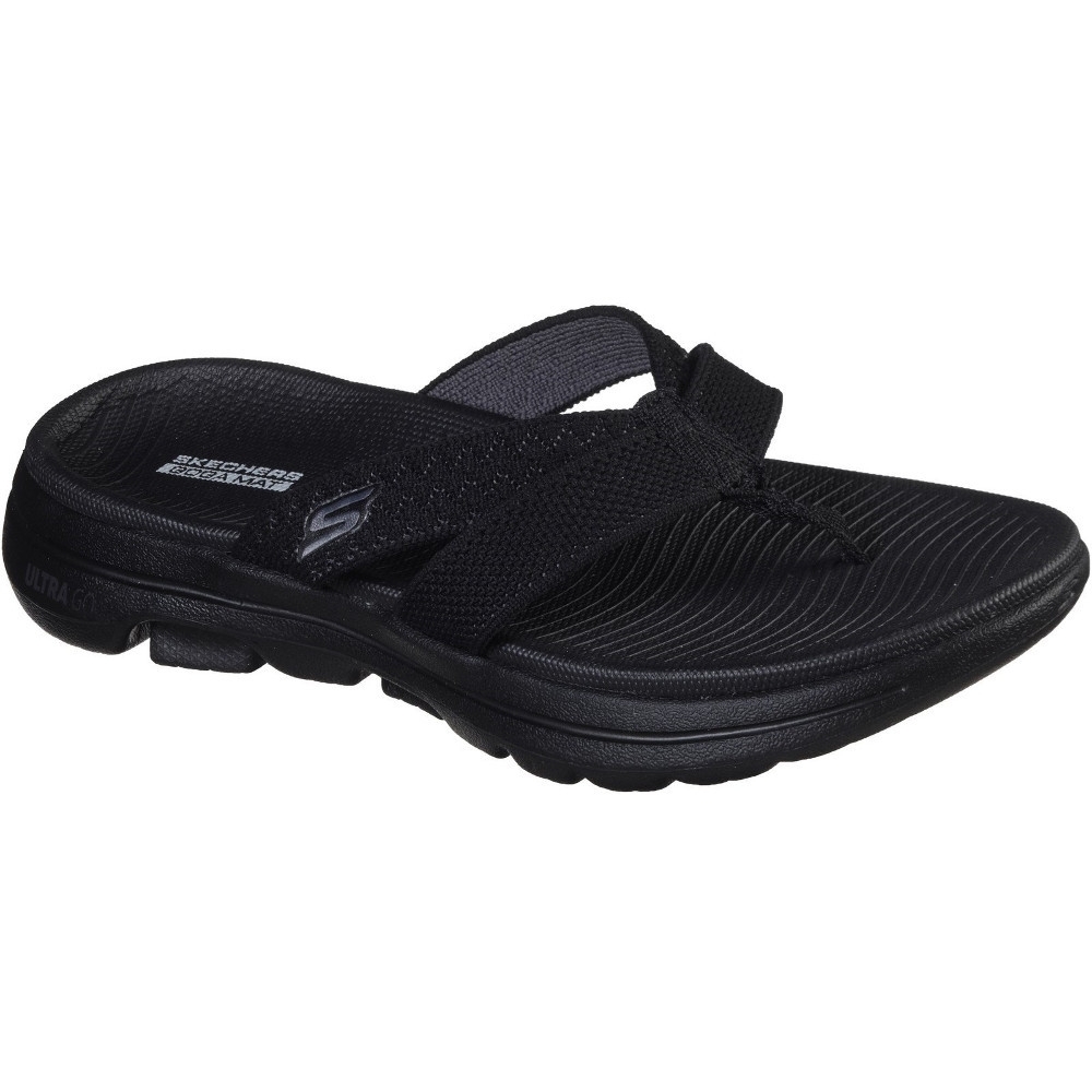 The Skechers GoWalk 5 Sun Kiss Lightweight Flip Flops are one of the simplest types of footwear that are easy-to-use and comfortable. These machine-washable slippers are available with a mesh fabric upper. The ULTRA GO cushioning keeps your feet at ease while the dual-density outsole is for stability and support. The centre panel detailing and stitched edging makes the flip flops look great on wearing., Lightweight responsive ULTRA GO cushioning. High-rebound COMFORT PILLAR TECHNOLOGY underfoot react to your every step for the ultimate comfort., Goga Mat technology contoured cushioned footbed. Dual density outsole for added stability and support., Soft woven flat knit mesh fabric upper. Machine Washable design for easy care., Soft flat knit mesh fabric upper. Knit mesh straps with knit-in texture detail., Strappy sport thong sandal design. Stitched edging and center panel detail.