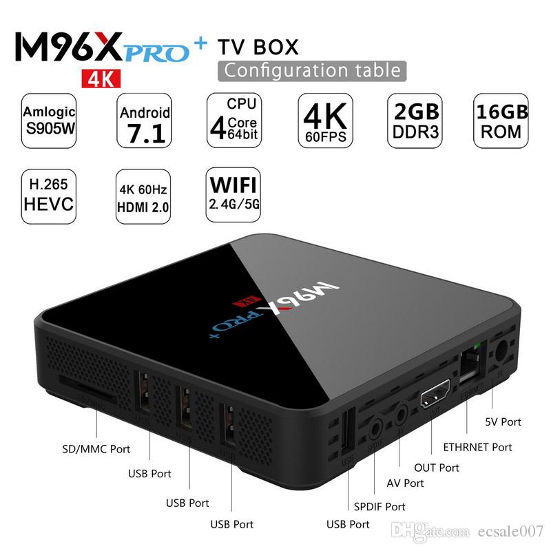 Smart TV BOX Android 7.1 2GB RAM 16GB ROM Amlogic S905W Quad Core Dual WIFI BT4.0 4K HD M96X Pro Plus PK X96 MINI MXQ