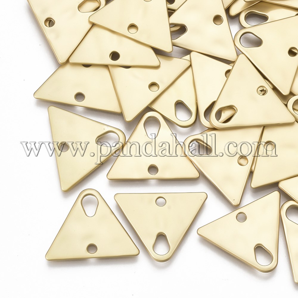 Smooth Surface Alloy Links/Connectors, Triangle, Matte Gold ColorSize: about 14.5mm long, 19mm wide, 1.5mm thick, hole: 1.6~3x4mm.This product is plated with matte gold color firstly, in order to avoid scratching, the surface is sealed with glaze finally, so it’s surface is smooth.