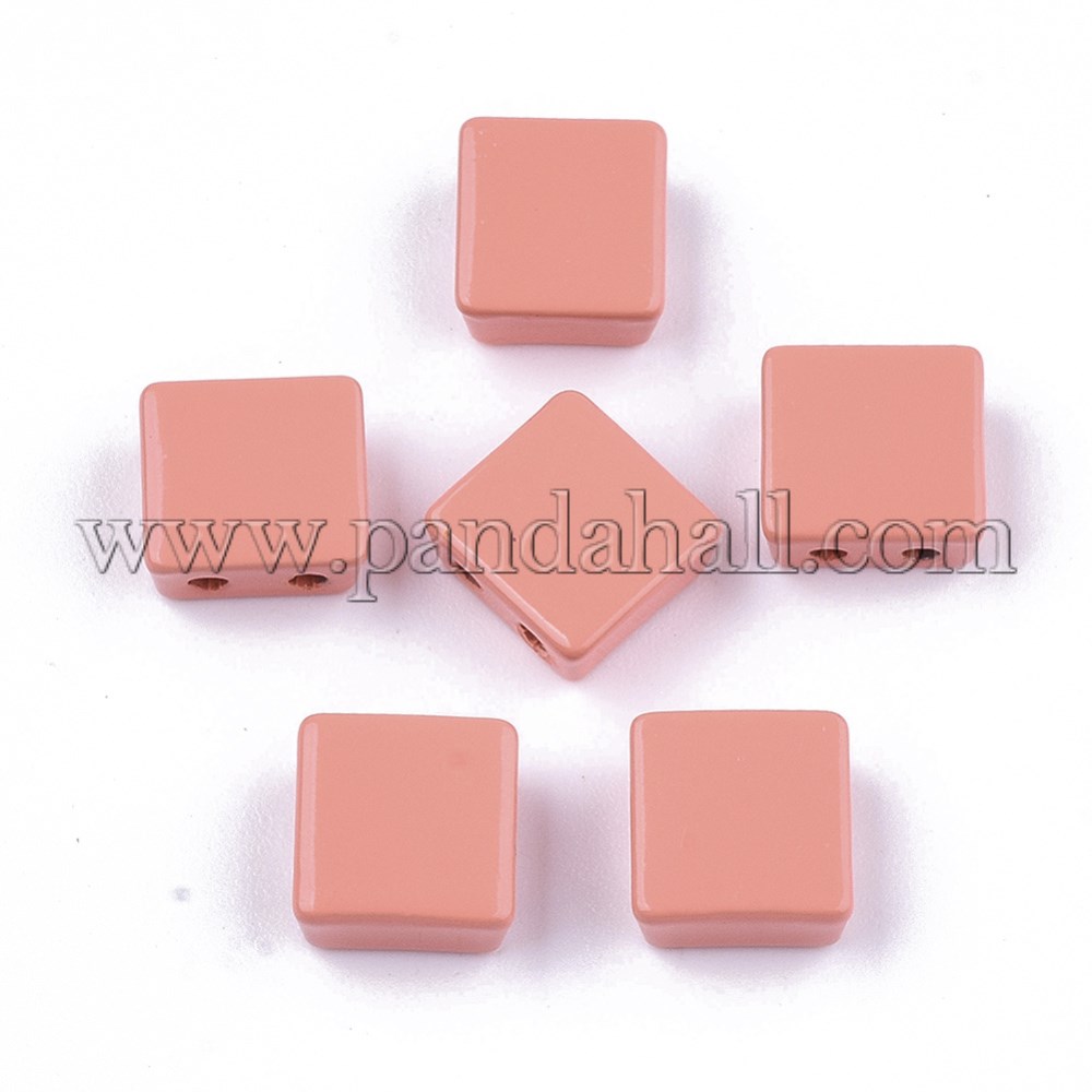 Spray Painted Alloy Multi-Strand Links, For Tile Elastic Bracelets Making, Square, SalmonSize: about 8mm long, 8mm wide, 4mm thick, hole: 1.2mm.