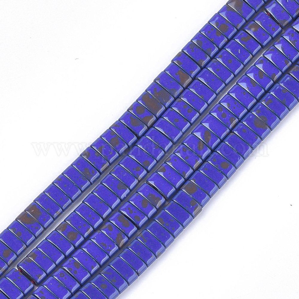Spray Painted Non-magnetic Synthetic Hematite Multi-Strand Links, For Tile Elastic Bracelets Making, Rectangle, BlueSize: about 2mm long, 5mm wide, 2mm thick, hole: 0.6mm; about 172pcs/strand, 16.1″.