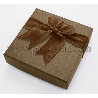 Square Bowknot Organza Ribbon Cardboard Bracelet Bangle Gift Boxes, CamelSize: about 9cm wide, 9cm long, 2.7cm high.Gift box for bracelets and bangles. Lid is decorated with an attached organza ribbon and bow for instant, easy gift-giving.
