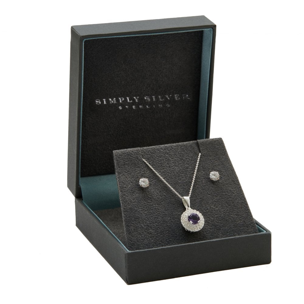 Sterling Silver 925 Cubic Zirconia Purple Round Diamond Set – Gift Boxed