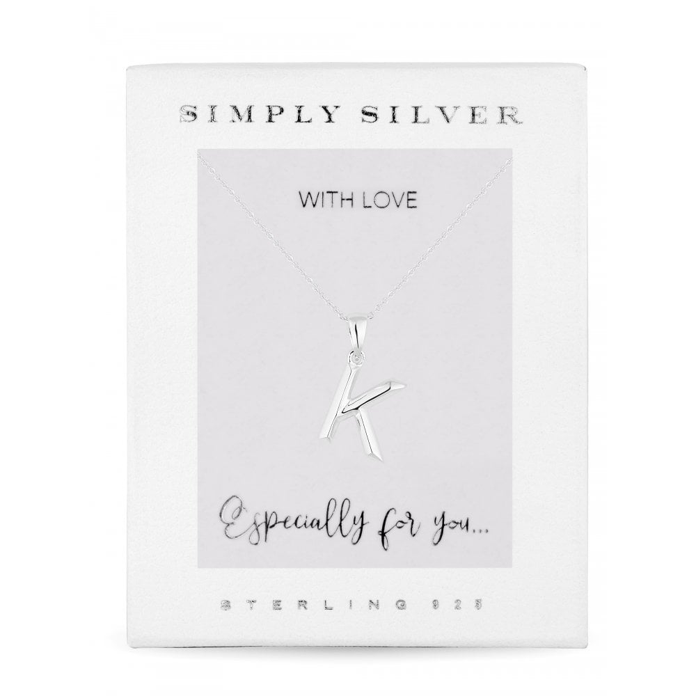 Sterling Silver 925 Polished Alphabet Necklace – Letter K