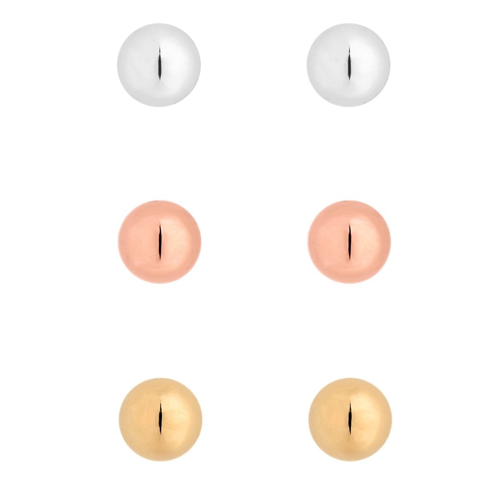 Sterling Silver 925 Tri Tone 5mm Polished Ball Pack Of 3 Earrings
