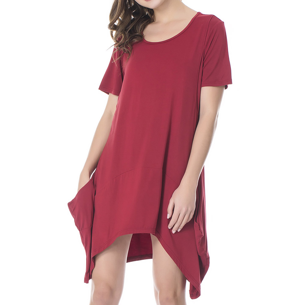 * Handy pocket * Asymmetric hem * Soft and comfy * Material: 93.1% Viscose, 6.9% Spandex * Machine wash, tumble dry * Imported