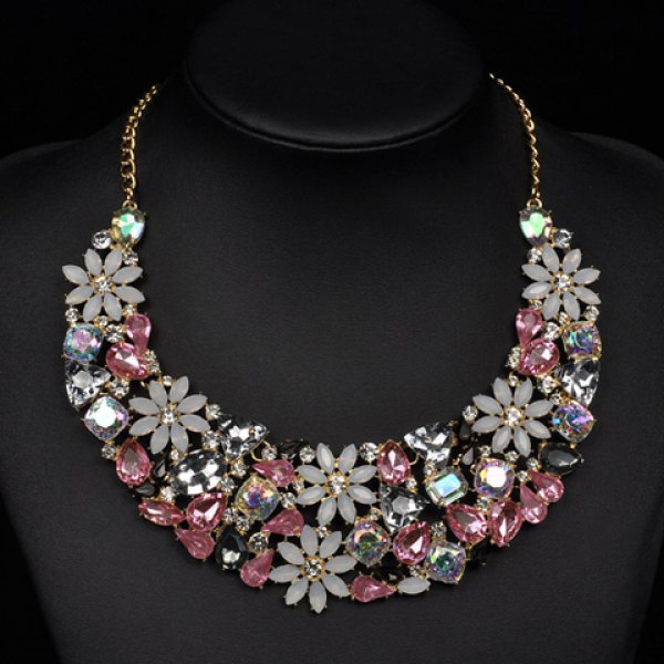 Stylish Faux Crystals Rhinestone Floral Geometric Necklace For Women