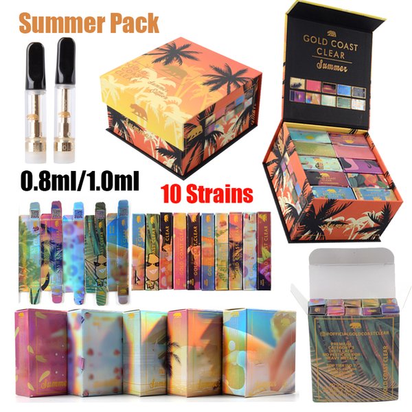 Summer & Spring Edition GOLD COAST CLEAR Atomizers Vape Cartridges Pacakging Box 1ml 0.8ml Empty Dab Pen Carts Thick Oil Vaproizer 510 Thread Electronic Cigarettes