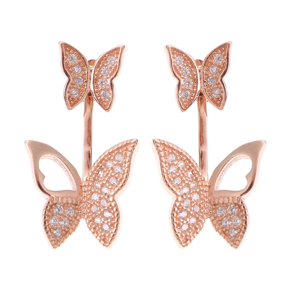 Description:Style: SweetType: Ear JacketsMaterial:925 Sterling Silver, Platinum Plated, Rose Gold Plated, ZirconiaMain Color:Silver, Rose GoldWeight: About 2.9gSize:About 2.2cm x 1cm / 0.87 x 0.39Package Includes:1 Pair of EarringsNotice:1. Please understand the product might have some colour differencedue to different monitors and scenes.2. Please allow slight deviation for the measurement data.