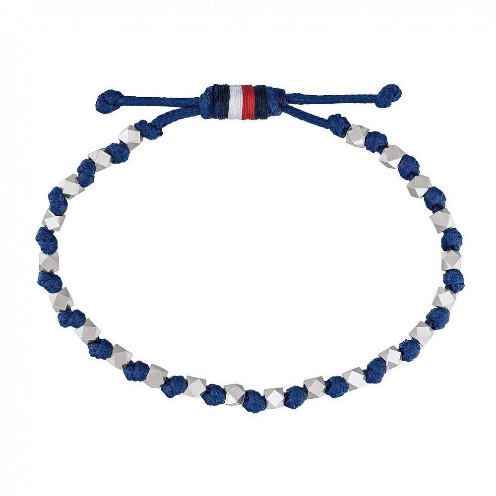 Tommy Hilfiger 2790026 Beaded Blue Leather Bracelet Material- Leather and Stainless Steel Length – Approx 19 cm Blue Men’s beaded bracelet from Tommy Hilfiger. Featuring stainless steel matte metal beads, blue coated leather thread wrap and barrel pull closure with Tommy flag thread. We are a Tommy Hilfiger UK authorised dealer Brand new boxed stock with full retail boxes & paperwork