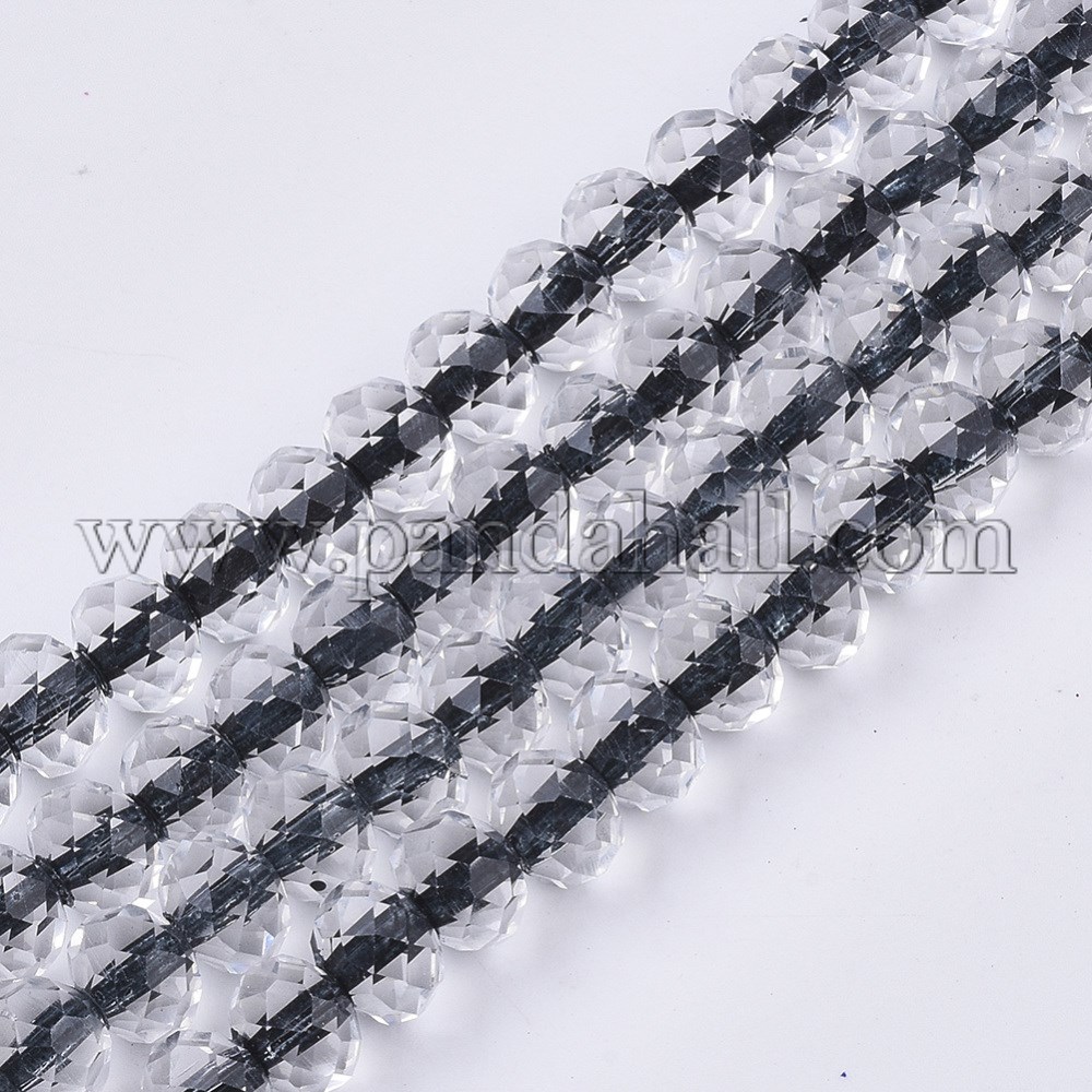 Transparent Spray Painted Glass Beads Strands, Inside Colors, Faceted, Abacus, BlackSize: about 8mm in diameter, 6mm thick, hole: 1.2mm; about 69~73pcs/strand, 15.94”~17.13”.