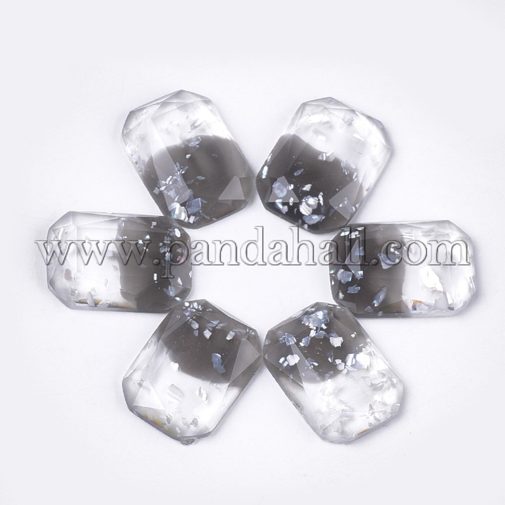 Two Tone Resin Cabochons, with Shell Chip, Faceted, Rectangle Octagon, DarkGray & ClearSize: about 13mm wide, 18mm long, 3.5~4mm thick.