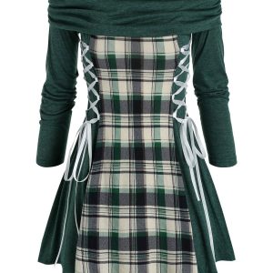 Two Tone Tie Waist Sleeveless Vintage Dress