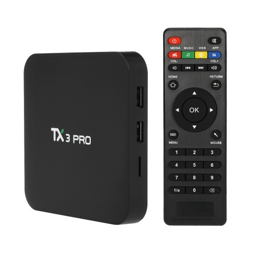 Features: [Amlogic S905W CPU] Powered by Amlogic S905W Quad-core ARM Cortex-A53 CPU up to 2.0GHz, TX3 PRO is a HD media player with Mali-450 penta-core, up to 750MHz+(DVFS) GPU. [Android 7.1 Nougat OS] Runs on the latest Android 7.1 Nougat System which is perfect in productivity, stability and performance, delivering an improved user experience. [Memory Expandable Storage] 1GB RAM, 8GB ROM and TF Card Reading up to 32GB give you more space to store your favorite media files and to run the device more smoothly. [H.265 High Efficiency Video Coding] Bandwidth saving Lifting speed: H.265 decoding can save about 50% band-width compared to H.264, letting you watch movie smoothly. [Your Own Home Theater] Once connected TX3 PRO with your WiFi or RJ45, your HDTV becomes into a smart streaming machine, making home entertainment easier.