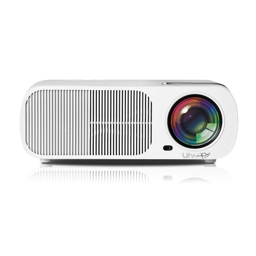 Features: Support red bluered green 3D. See movies together with your family. High color LED light source with vivid color display. Optical keystone correction. Finel lens implantation mechanism to achieve grapic vertical trapezoidal distortion correction through optical and image system. The aspect ratio is 4:3 / 16:9, the distance of projection is from 1.20m to 6.0m, the size of projection is from 32 inch to 200 inch. Supports multiple languages: Chinese, English, French, German and Spanish etc. Compatible with a variety of equipment: Such as PC, laptop, USB memory drive, phone, TV box and SD card etc.