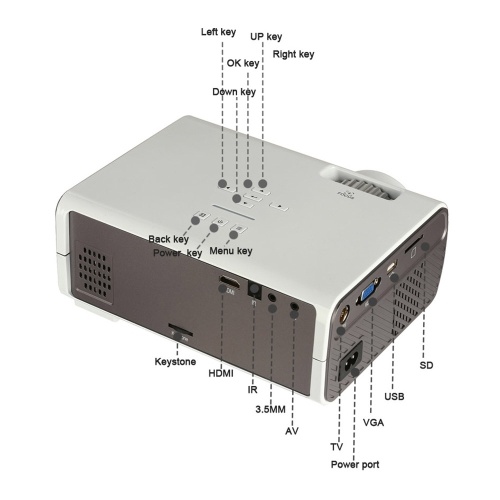 Various functional interfaces: AV/VGA/USB/SD/HDMI/TV.