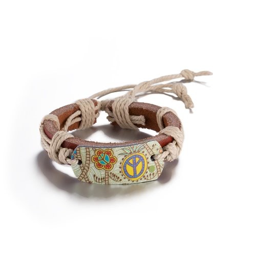 Vintage Fashion Print Charm Strap Leather Unisex Bracelet