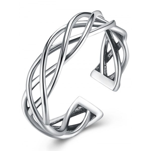 Vintage Sterling Silver Geometric Crossover Cuff Ring