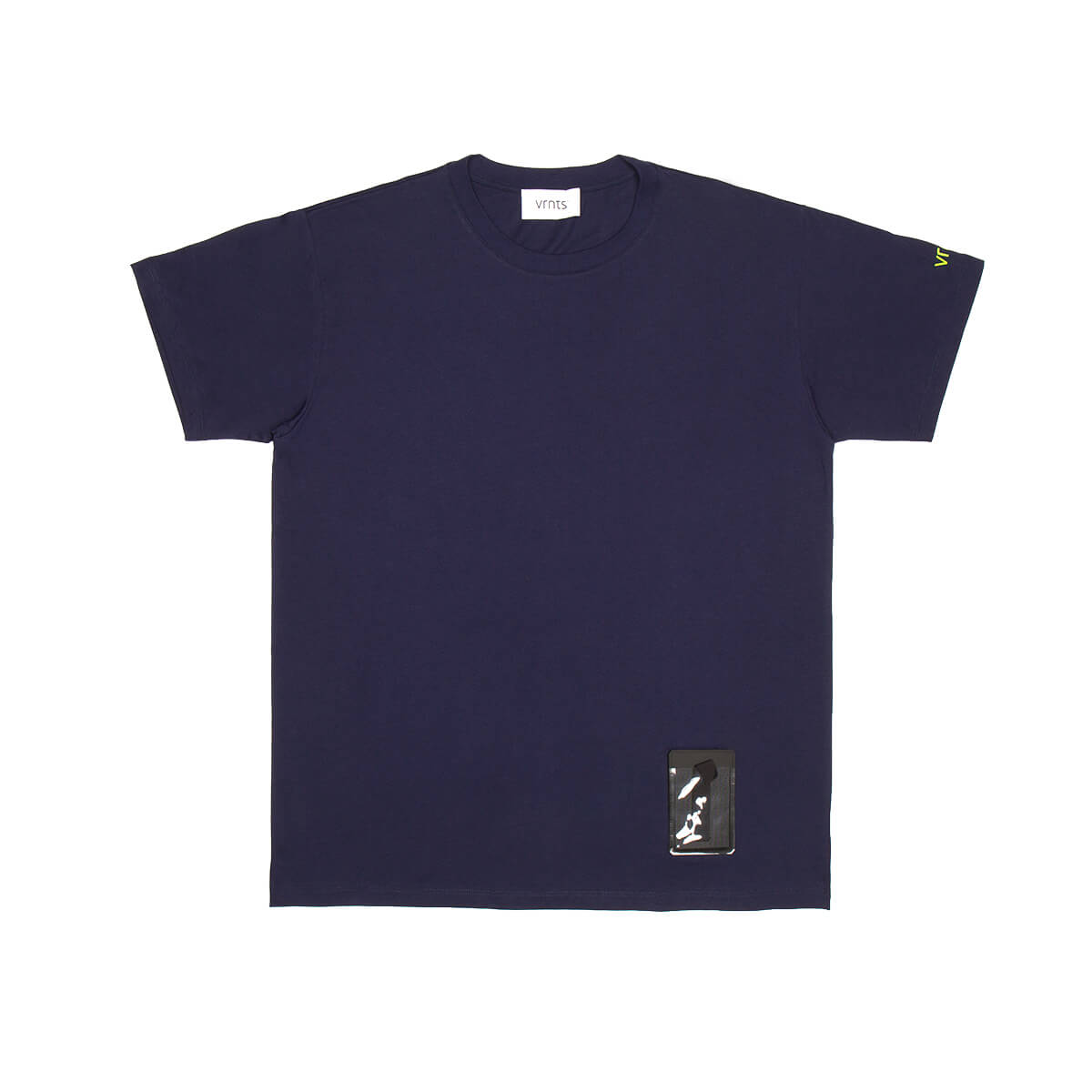 Vrnts navy t-shirt from the first Vrnts merchandising collectionThis t-shirt from Vrnts new collection comes in a comfortable fit. The crew neck tee, here in navy blue, is made of cotton and features a removable detail inspired by the snowboard universe, perfect to keep the skipass or other cards always with you, and Vrnts printed logo at sleeve.- T-shirt- Crew neck- Removable card holder- Vrnts logo- Composition: 100% Cotton- Made in Italy- Code: R AU 1000 1209 0755