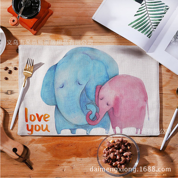 watercolor animal cotton and linen food mat japanese style heat insulation pad rectangle continuous system thickening countryside mat