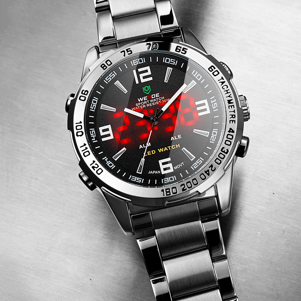 SpecificationBrand Name:WEIDEModel Number: WH1009Movement:QuartzItem Type:Wrist Watch Dial Window Material:GlassBand Material:Stainless SteelDial Display:AnalogClasp Type:Fold BuckleStyle:Casual,BusinessGender:MaleWater Resistance:Life Waterproof (Sweat, small raindrops not afraid, But dont flush, Bubble water, Bathing etc.) Features:Time DisplayDial Diameter:about 30mmCase Thickness:about 13mmBand Width:about 13mmBand Length:about 200mmPackage Included:1 X WEIDEWH1009WatchNotice:The picture is only for reference,please consider carefully before purchase.