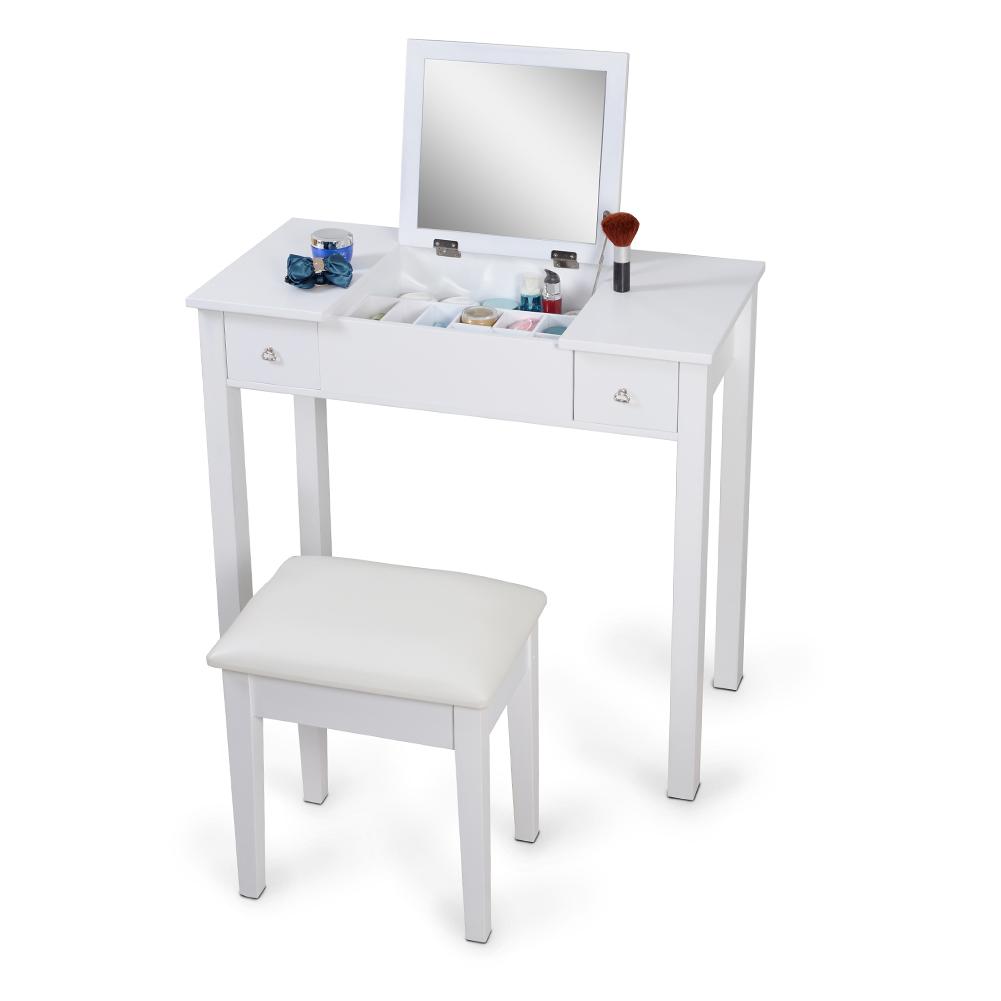 Coming with 1pc 3mm thickness Flip Mirror and Two small drawers to store your array of cosmetics, jewelry and beauty supplies One cabinet with 9 shelves