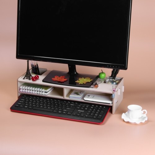 Wooden Monitor Stand Riser Computer Desk Organizer with Storage Slots for Office Supplies School Teachers