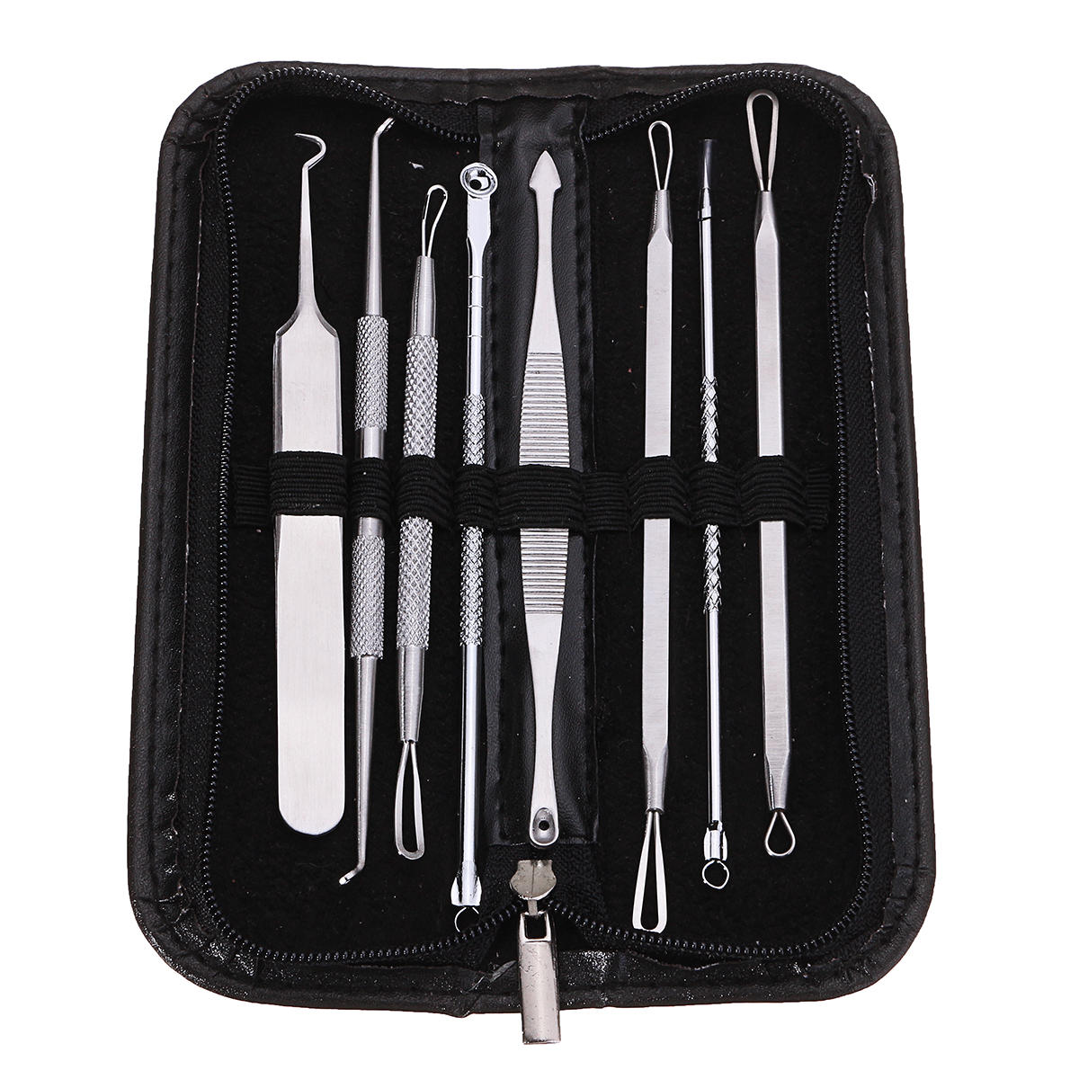 Features:1. This 8pcs kit includes various tools and handle designs for easy grip and multipurpose use.2. All tools are made from stainless steel.3. Used for removing acne, blackheads, whiteheads, comedones, pimples and blemishes,minimize damage to your skin.Description:Item Type: Blackhead Remover Tool SetMaterial: Stainless SteelQuantity: 8PcsSize: As Shown In PicturesPackage Inlcuded:1 x Blackhead Remover Tool Set( 8pcs )1 x Black Faux Leather BagNote:1. Please allow slight deviation for the measurement data and make sure you do notmind before ordering.2. The real color of the item may be slightly different from the pictures shown on websitecaused by many factors such as brightness of your monitor and light brightness.3. Due to different producing batches, product details might be a little different. If youminding the difference,Please buy it carefully.
