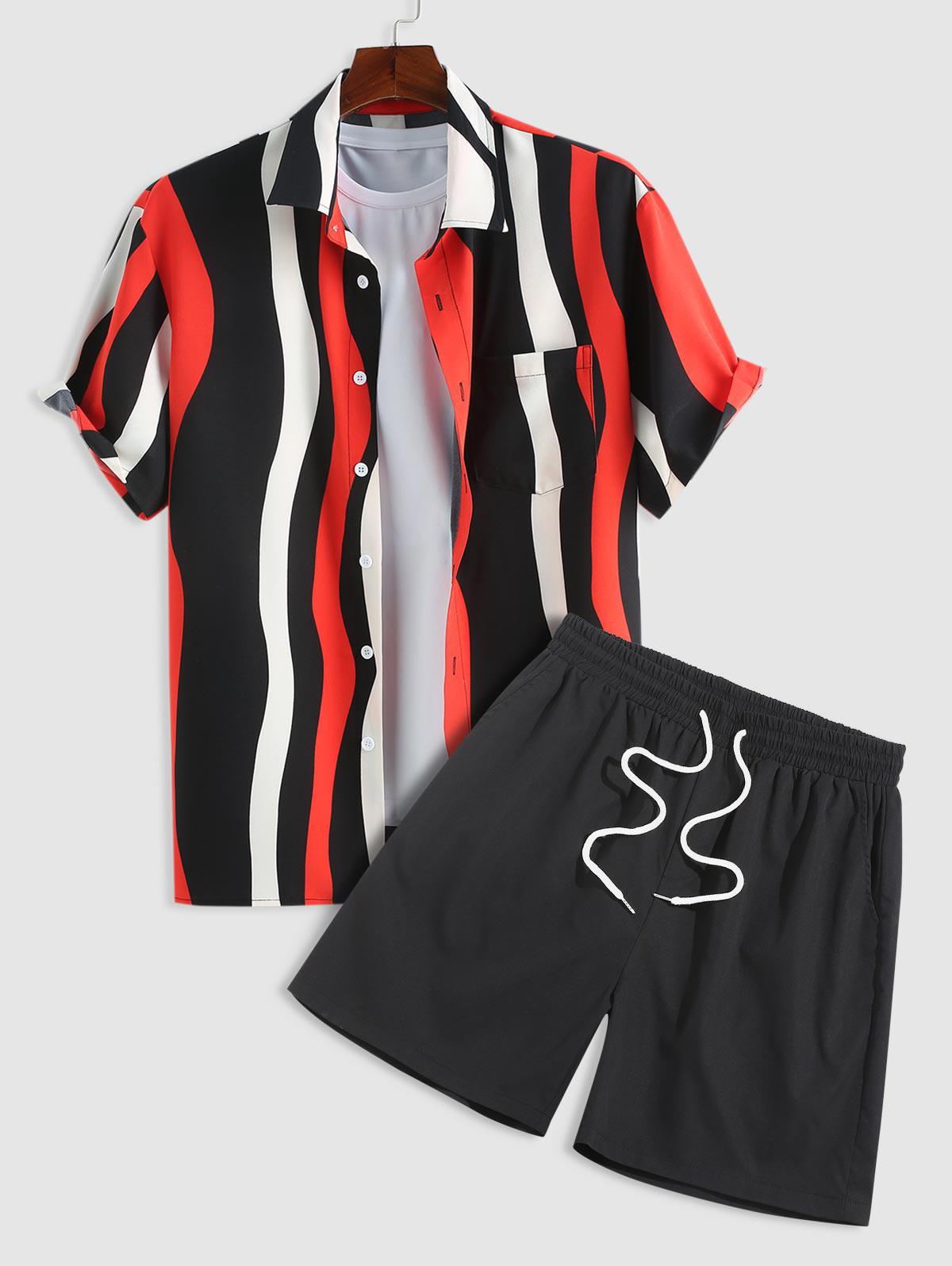 Zaful Type: Shirt&Shorts Set Style: Casual Occasions: Daily,Vacation Shirt Length: Regular Sleeves Length: Short Bottom Length: Shorts Waist Type: Mid Closure Type: Drawstring Pattern Type: Striped Material: Polyester Material Stretch: No Stretch Season: Summer Weight: 0.3500kg Package: 1 x Shirt 1