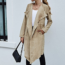 Women’s Trench Coat Daily Fall Long Coat Regular Fit Warm Casual Jacket Long Sleeve Solid Color Lace up Blue Black Beige Lightinthebox